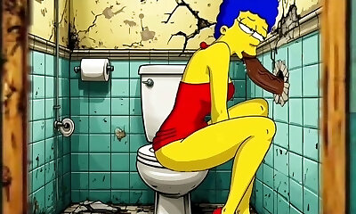 طنز پورنو سیمپسون: همسر خیانت سکسی مارج اجازه می دهد تا یک شخص سیاه و سفید او را در توالت عمومی