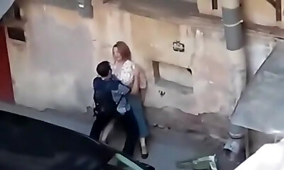 Snooping یک ginormous بانوی دریافت ویران از بالکن