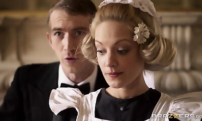 светловолосая пума-воспитательница в нейлоновых чулках с огромными молочными банками хочет большой черный член